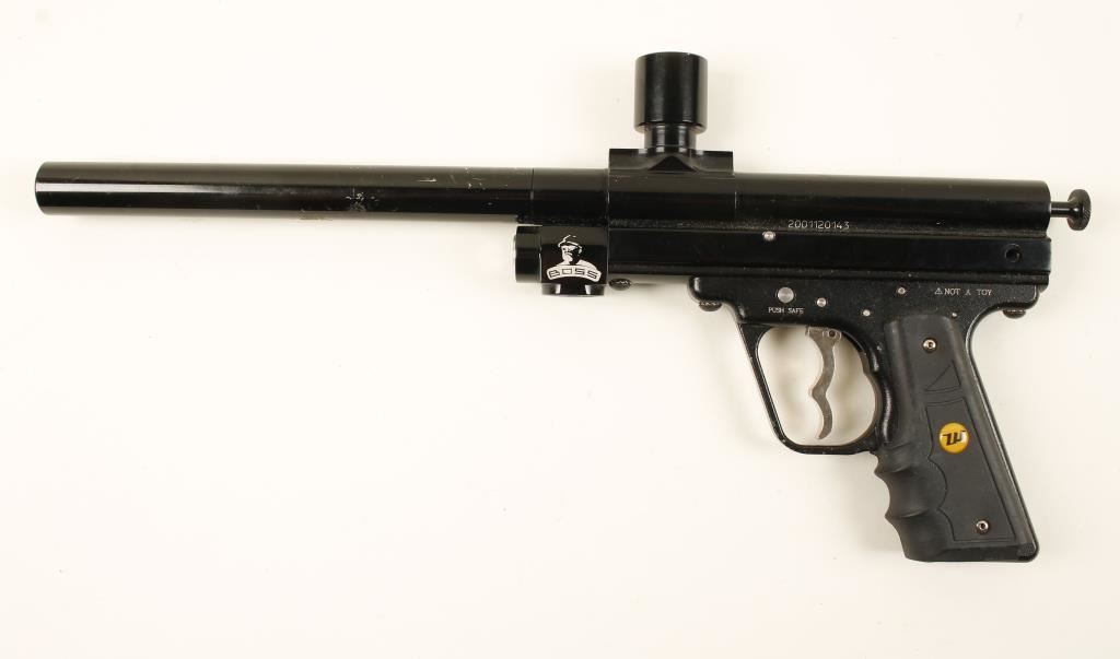 Stand-alone gun with "Boss" on the threaded gas port and a stylized "W" on the grip. No accessories.