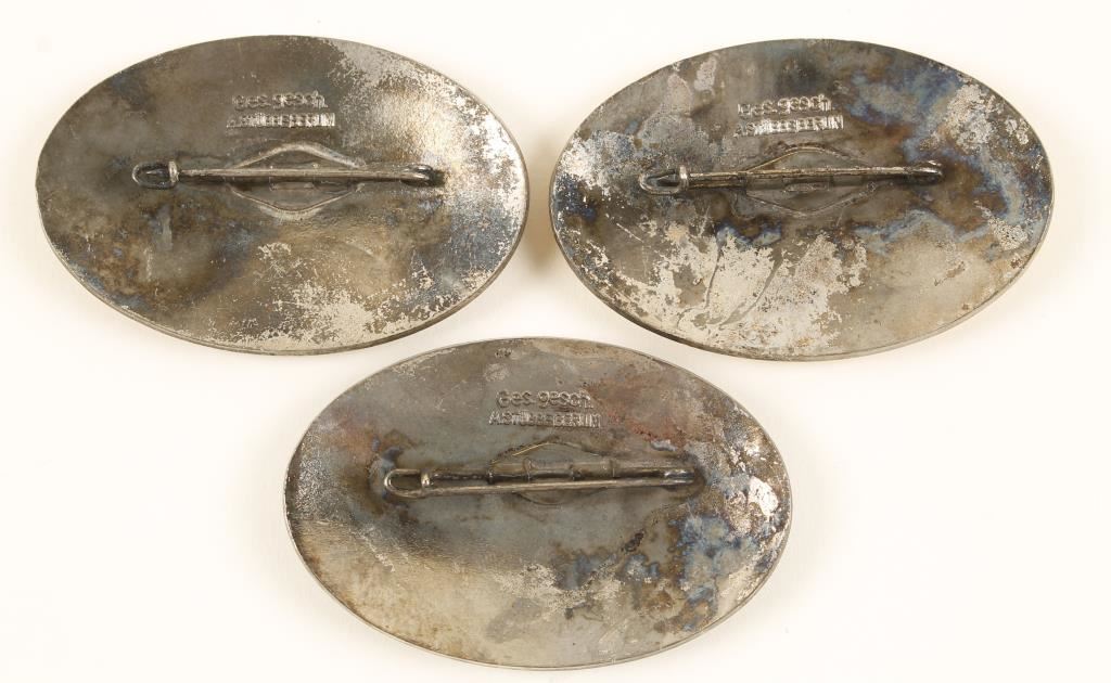 Car Badges. They measure 2 1/4" wide by 1 1/2" tall. Maker marked 'ges gesch A Stubbe Berlin'. All three have a thin horizontal pin back. Nickel construction with enamel. Offered "as is", we don't guarantee the authenticity of this item, please do your research. All sales are final.