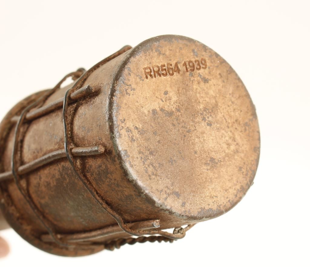 Grenade. DEWAT, measures 13 15/16 " long overall. The camouflage steel head is maker marked 'R564 1939'. The head is wrapped with wire for extra shrapnel fire power. The wood handle is marked 'hhz 1939 mer'. It is also stamped with an army waffen ampt eagle. Excellent for display. Offered "as is", we don't guarantee the authenticity of this item, please do your research. All sales are final.