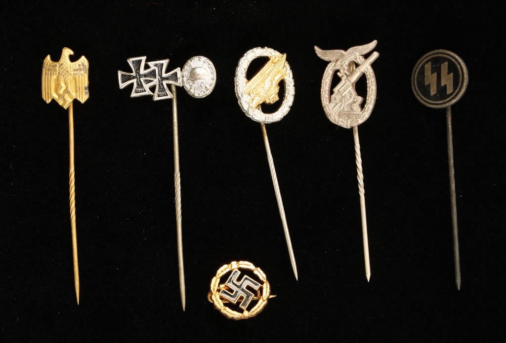 Includes Luftwaffe Flak Artillery Badge; Luftwaffe Paratrooper Badge; Arm Eagle; Iron Cross & Wound Badge; Waffen SS Enameled Runics; Swastika Pin. Offered "as is", we don't guarantee the authenticity of this item, please do your research. All sales are final.