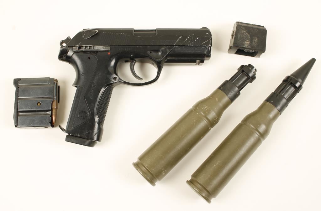 Including 2 large shell casings, a Ruger 10/22 mag, Ruger mini 14 mag, and a PX4 Beretta pellet gun.