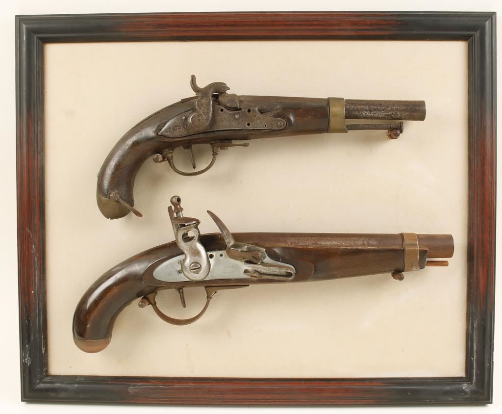 Lot 1489 Framed Set of Wall Hanging Pistols