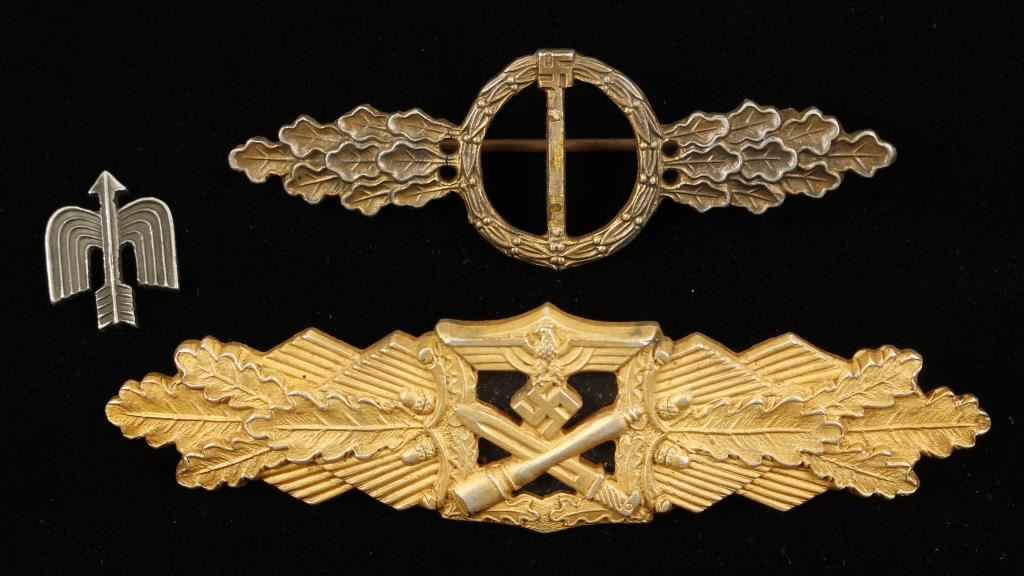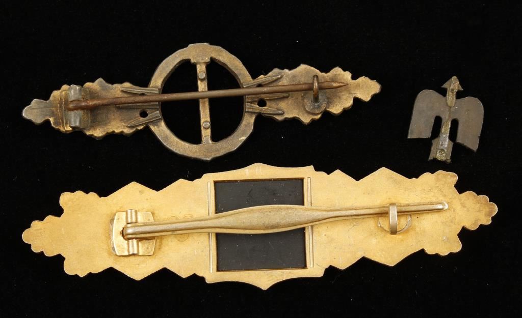 2 high quality Nazi reproduction Nazi badges and a stick pin.