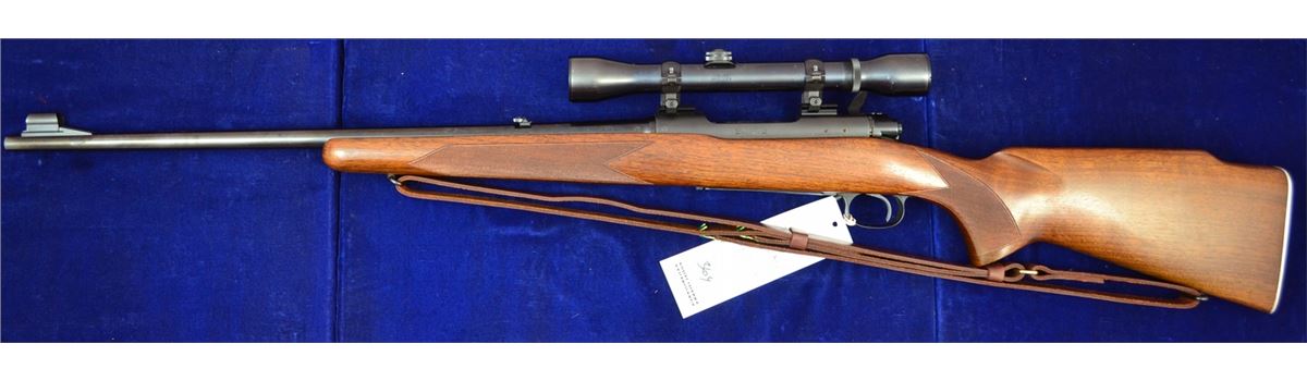 WINCHESTER MODEL 70 FEATHERWEIGHT IN 243 CAL MADE IN 1955 23INCH BARREL WITH VINTAGE WEAVER K4-F SCOPE A9559 SERIAL 377768