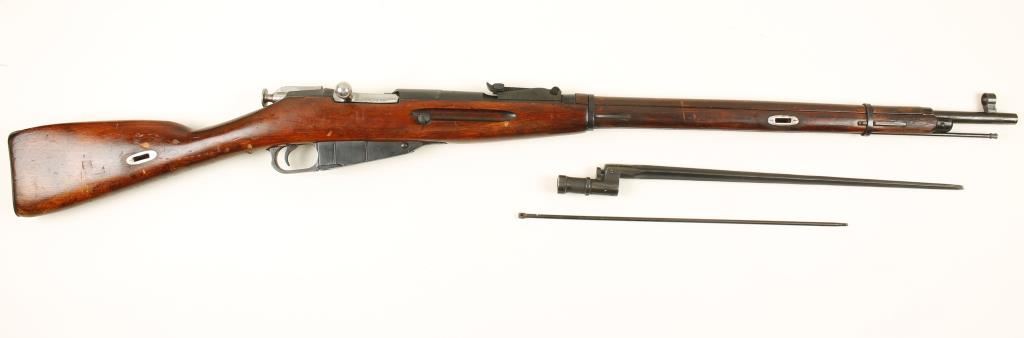 Russian bolt action clip fed military rifle chambered in 7.62x54 imported by C.A.I. Features a 29" blued barrel, hooded post front sight, long range sporting rear sight, bayonet, two cleaning rods and straight grip wood stock. Condition is good as refinished. ***Modern Firearm***