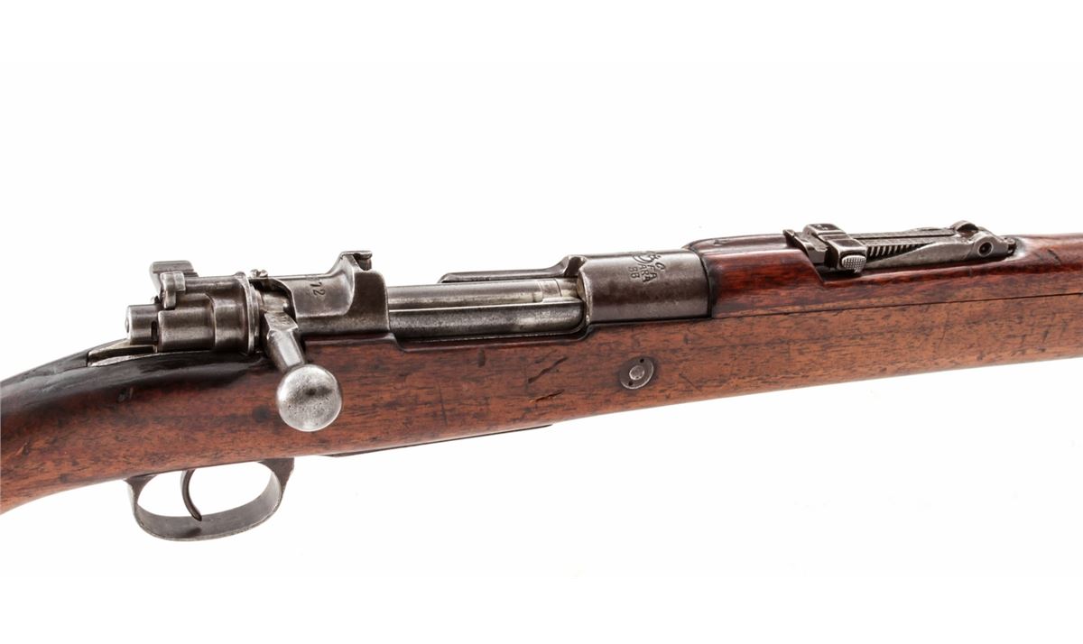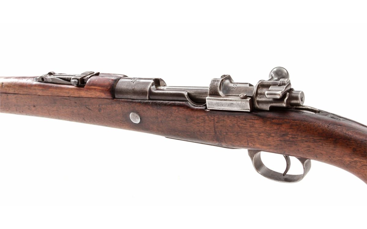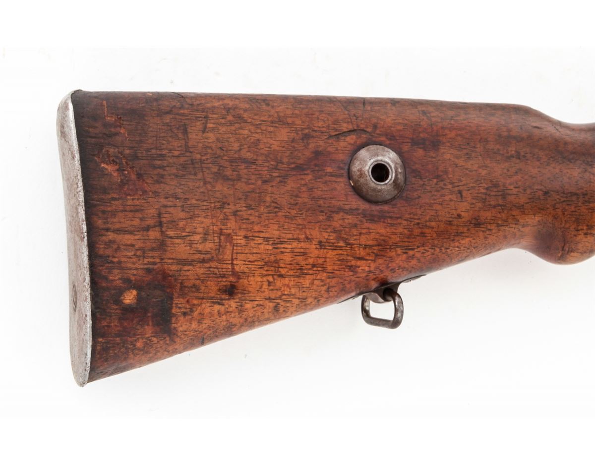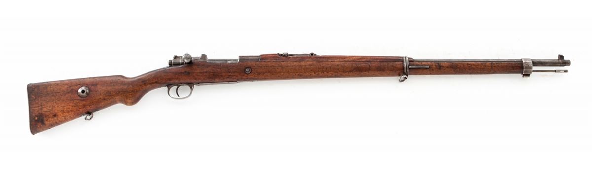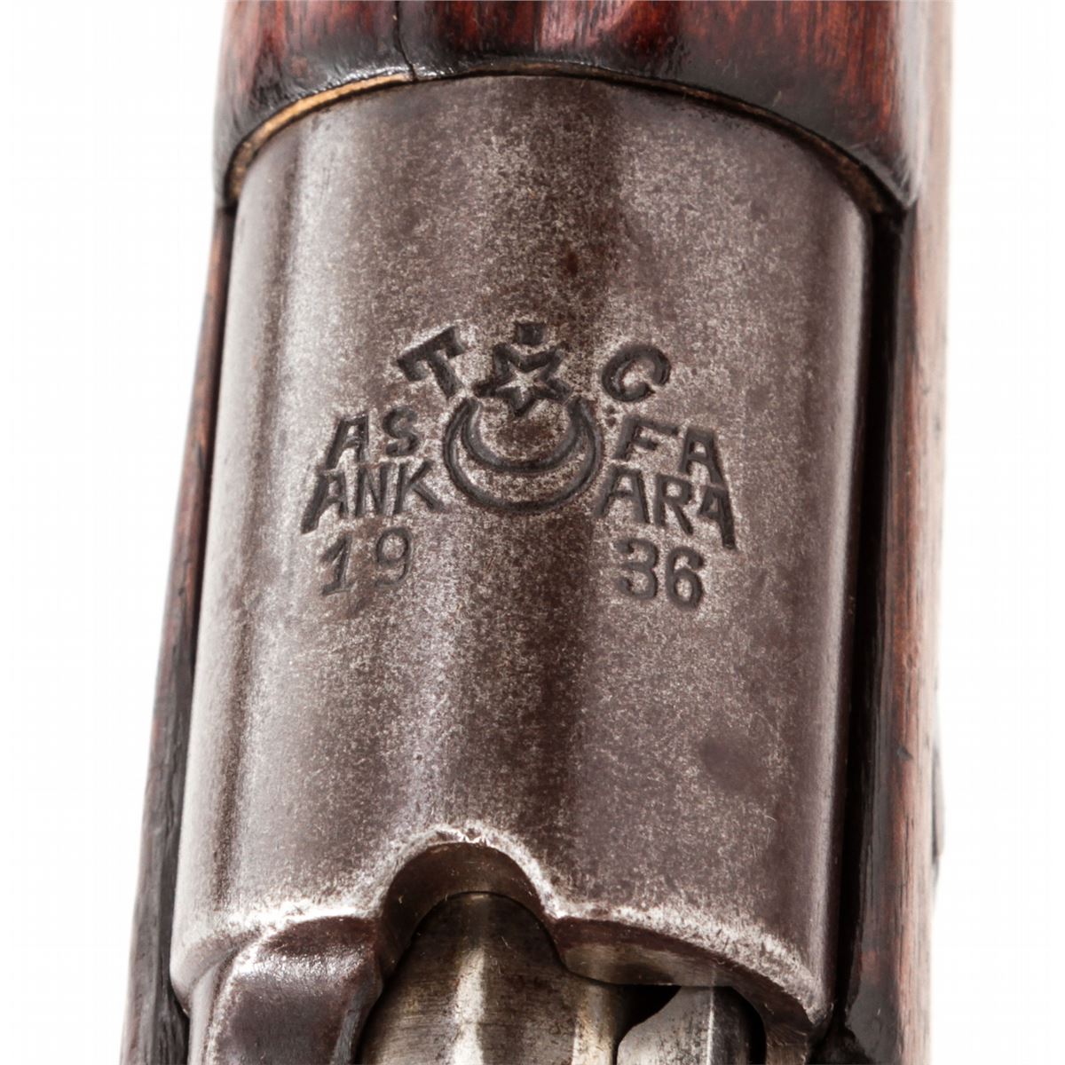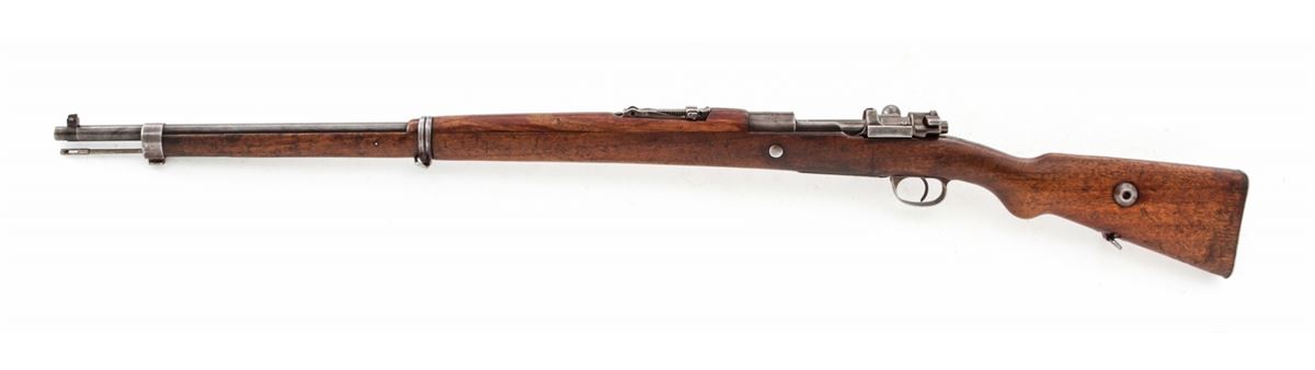 Turkish Mauser Bolt Action Rifle, #22572, 8mm, 29-1/4'' barrel, blue finish, European walnut stock. Marked ''ASFA/Ankara/1936''. Condition is very good as lightly import marked, retaining approx. 70% evenly thinning blue. Stock with scuffs and oil darkening. Mismatched small parts. Good action and bore. Est.: $150-$300. (C&R)