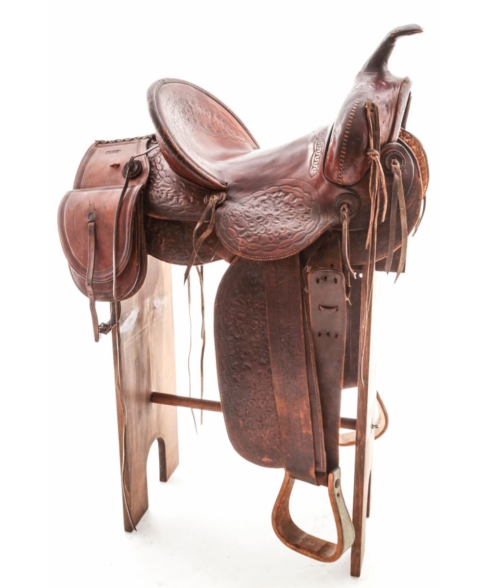 Lot 356 Early 20th C. Tooled Leather Saddle, by Stern