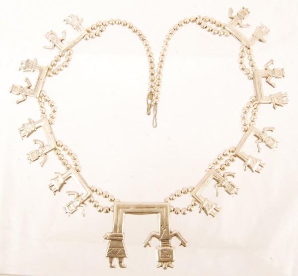 Lot 91 Navajo Indian Yei Figure Silver Necklace
