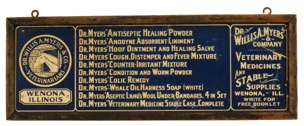 Lot 169 Dr. Willis A. Myers & Co. Wooden Veterinarian Sign
