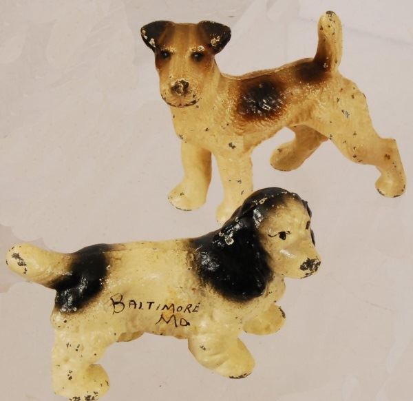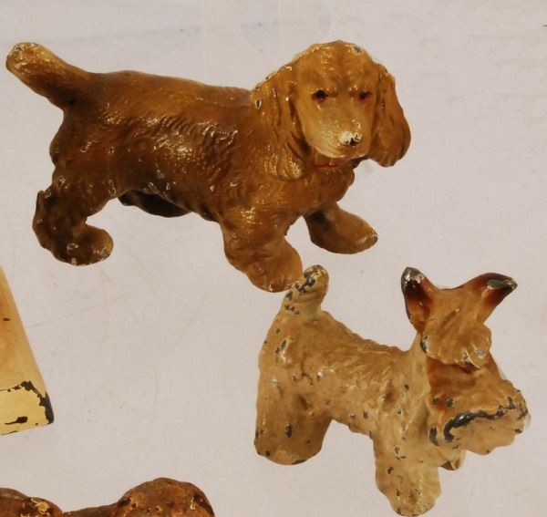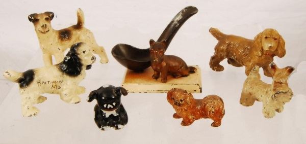 Hubley Spaniel, Small Iron Pup, Pipe Holder, Baltimore MD Cocker Spaniel, Schnauzer, Small Iron Airedale, and Hubley Peke.