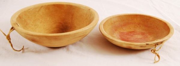 Pair of carved wood bowls. Sioux. Rare artifact. Early 20th century. Largest is 8 1/4" diameter. Made of cottonwood. Shows some use.