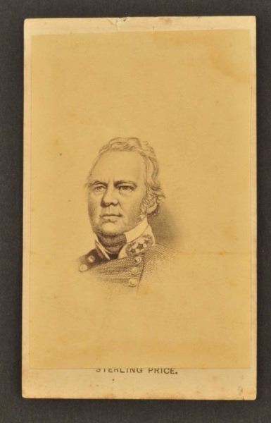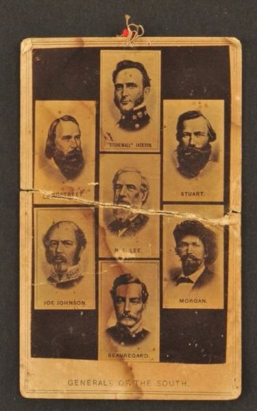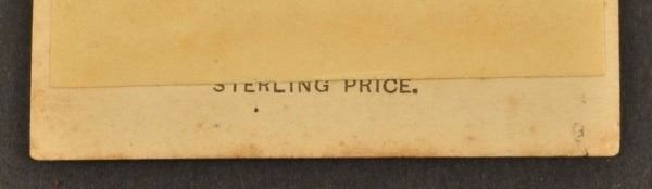 General Albert S. Johnson Photo, General Johnson of Texas, Killed at Shiloh. No B/M. 2-1/2" x 4”; Card Photo Of General Harry Hays Of Louisiana, Card trimmed at bottom, no B/M, rare image. Same image used in Confederate Veterans Magazine Article, copy included; General Sterling Price Photo, No B/M. 2-1/2" x 4"; General Joe Johnson Photo, No B/M. 2-1/2" x 4"; General Polk Photo, Photo by Anthony from Brady negative. Killed at Pine Mountain, GA, 1864. 2-1/2" x 4"; Generals Of The South Photo, Water stains and creases. 2-1/2" x 4"; General Kirby Smith Photo, No B/M. 2-1/2" x 4"; General Bragg Photo, Photo by Walker, Great Britain. 2-1/2" x 4"
