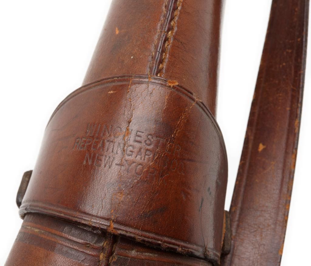 Lot 235 Scarce original leather scabbard for a Winchester Model 1873 rifle, marked