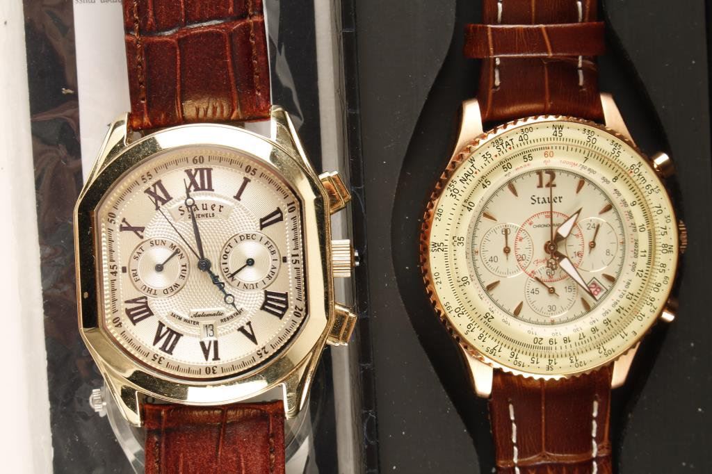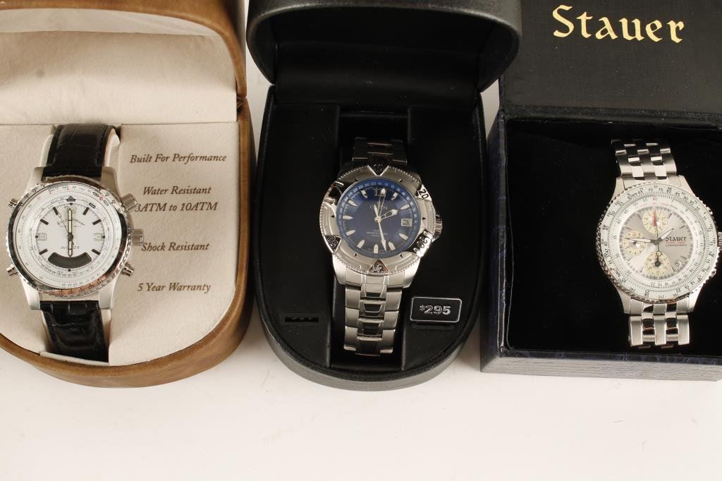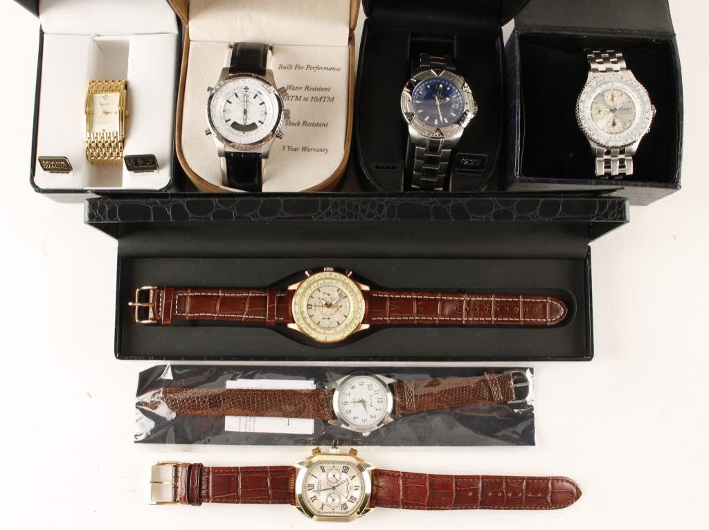 Bonanza lot of 8 watches, retailing up to $295.00 each; includes Benrus, Stauer, Croton, Field & Stream and Eiger; old stock; appear like new; some in handsome cases; need new batteries. Est.: $100-$300.