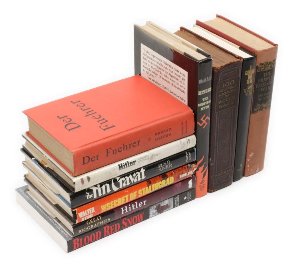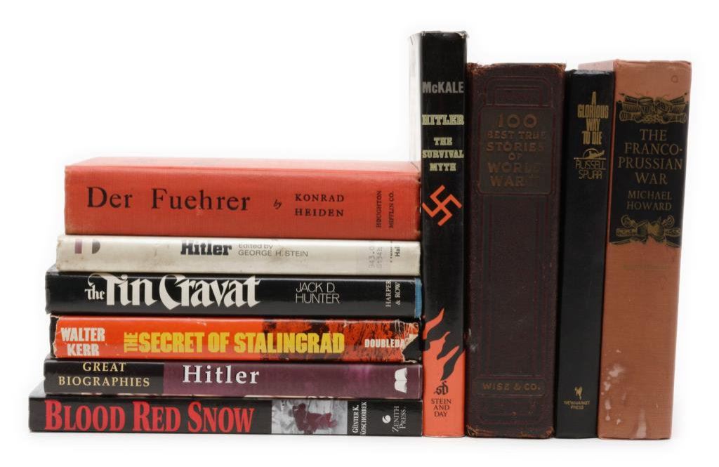 Lot of 9 hardback and 1 softcover books on German military history including The Franco-Prussian War by Howard; Blood Red Snow, The Memoirs of a German Soldier on the Eastern Front by Koschorrek and 100 Best True Stories of WW II edited by Wiser & Co. Est.: $75-$100.