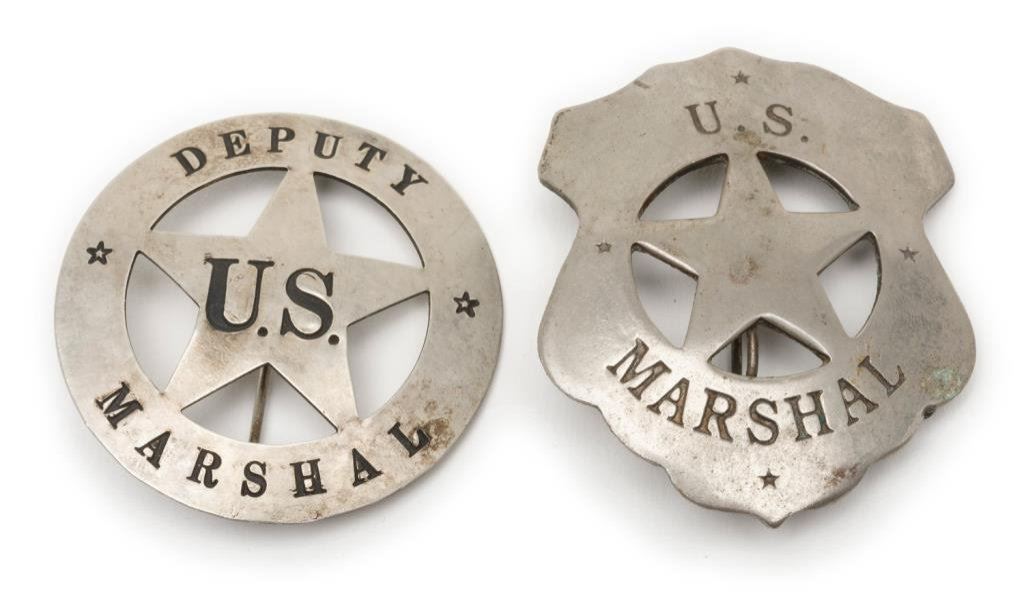 Lot 769 Lot of 2 old badges; one is an 8-point star marked Deputy U.S. Marshal wit