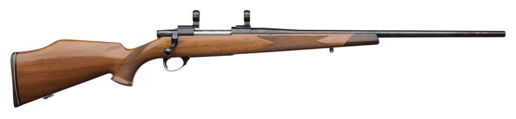 *Weatherby Vanguard bolt action rifle, .300 Win. Mag. caliber, 24” round barrel, S/N 01657, blued finish, checkered wood stock with receiver-mounted scope rings, in overall fine condition displaying the majority of its original finish, fine bore, action, markings and wood stock that shows light old scattered minor storage scratches and mars. Est.: $800-$1,200.