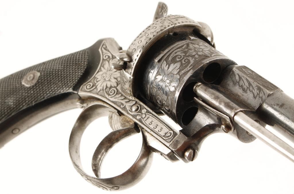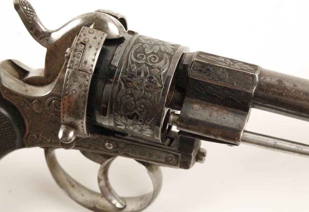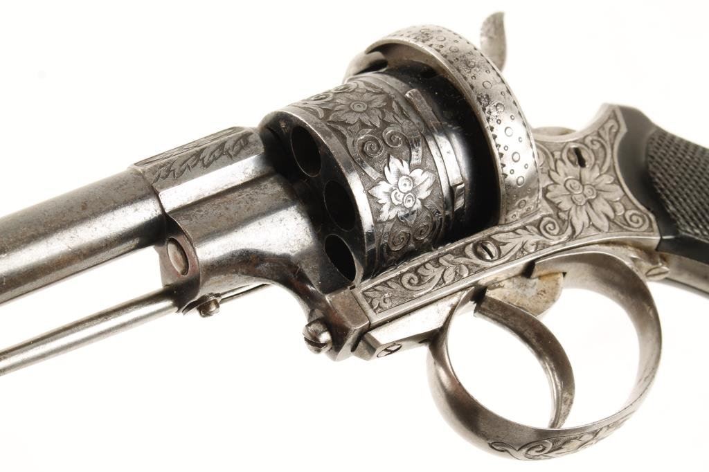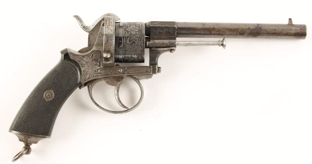 Lot 892 Engraved European Pinfire Revolver, 9mm caliber, 5.75” barrel, S/N 15331.