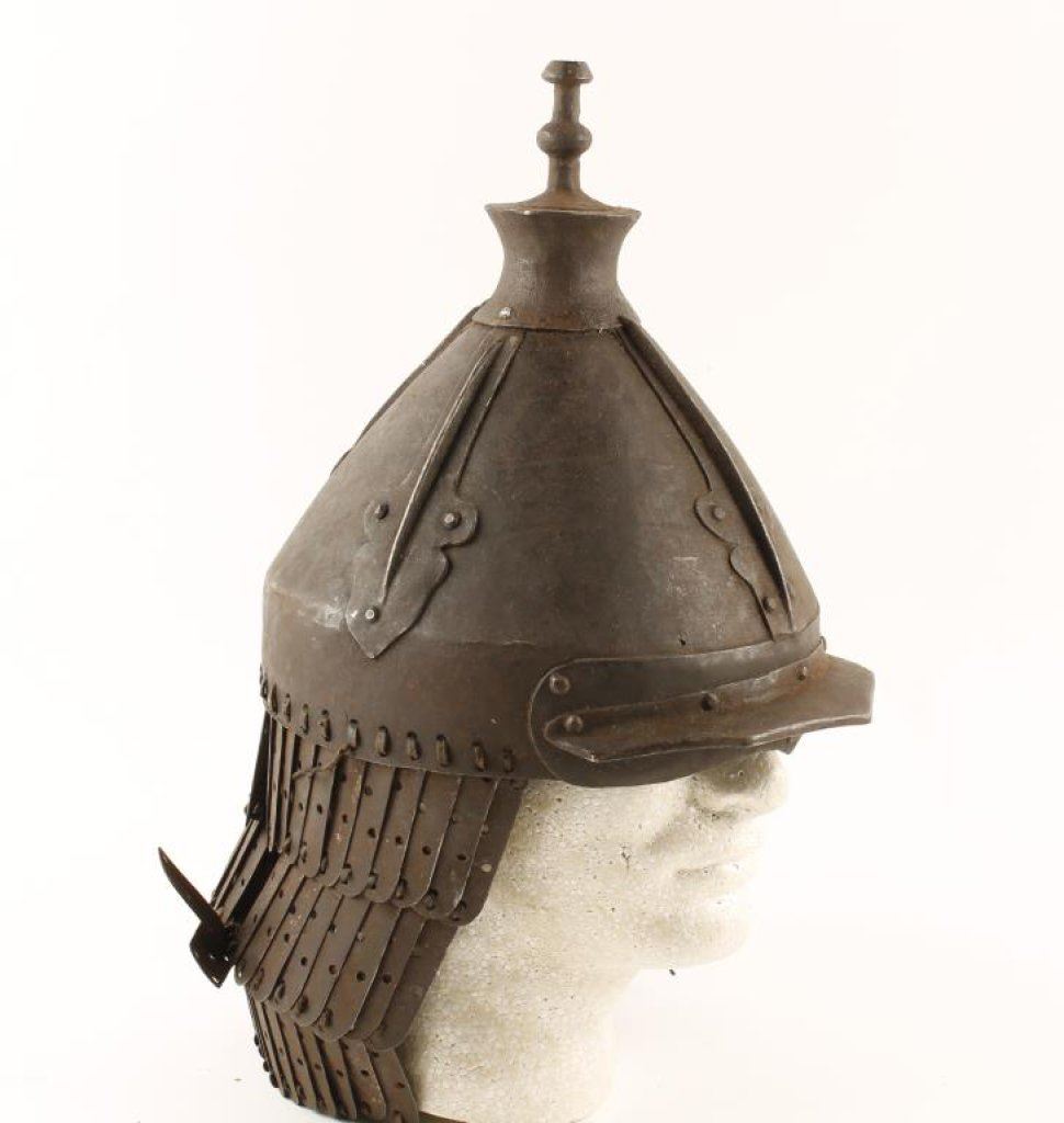 Lot 967 Tibetan or Chinese style helmet with forged iron links and plates; made sa