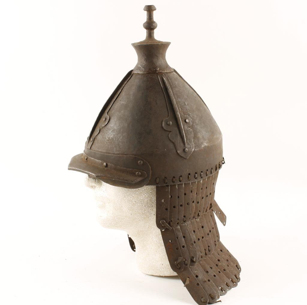 Tibetan or Chinese style helmet with forged iron links and plates; made same way from 17th to 20th Century; age not warranted. Est.: $900-$1,800.