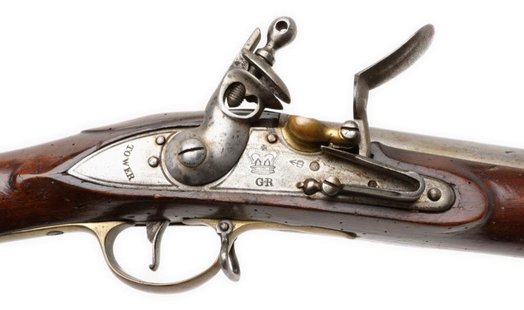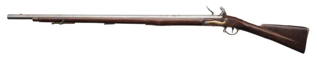 Third Model Brown Bess flintlock rifle, .75 caliber, 39” barrel, GR over Crown and Tower markings on lock plate; full stock, brass mountings, missing ramrod. This classic English flintlock is in overall exceptional condition for its age with sharp markings, strong action and good stock with scattered small old worm holes. Est.: $1,250-$2,500.