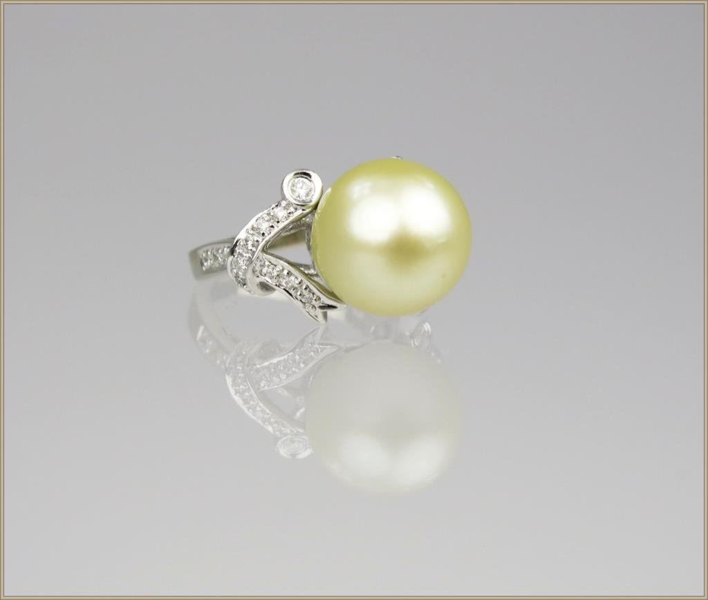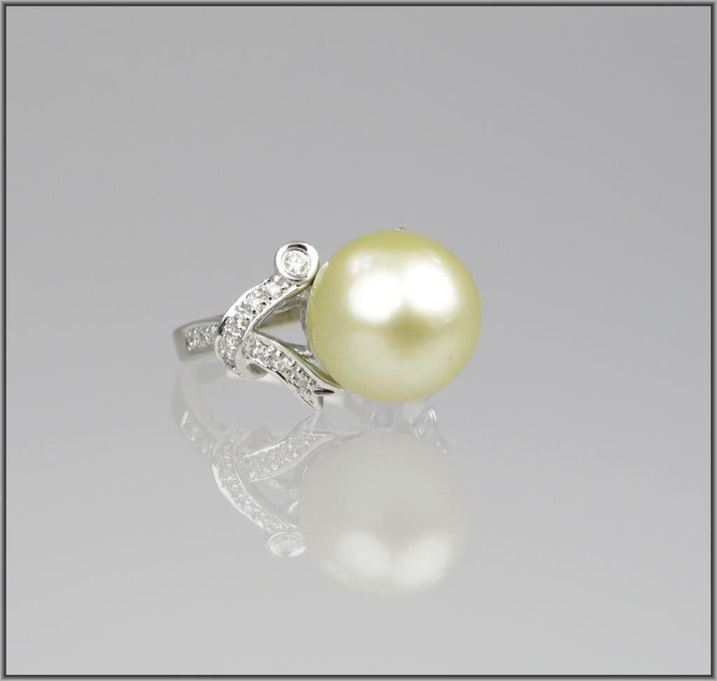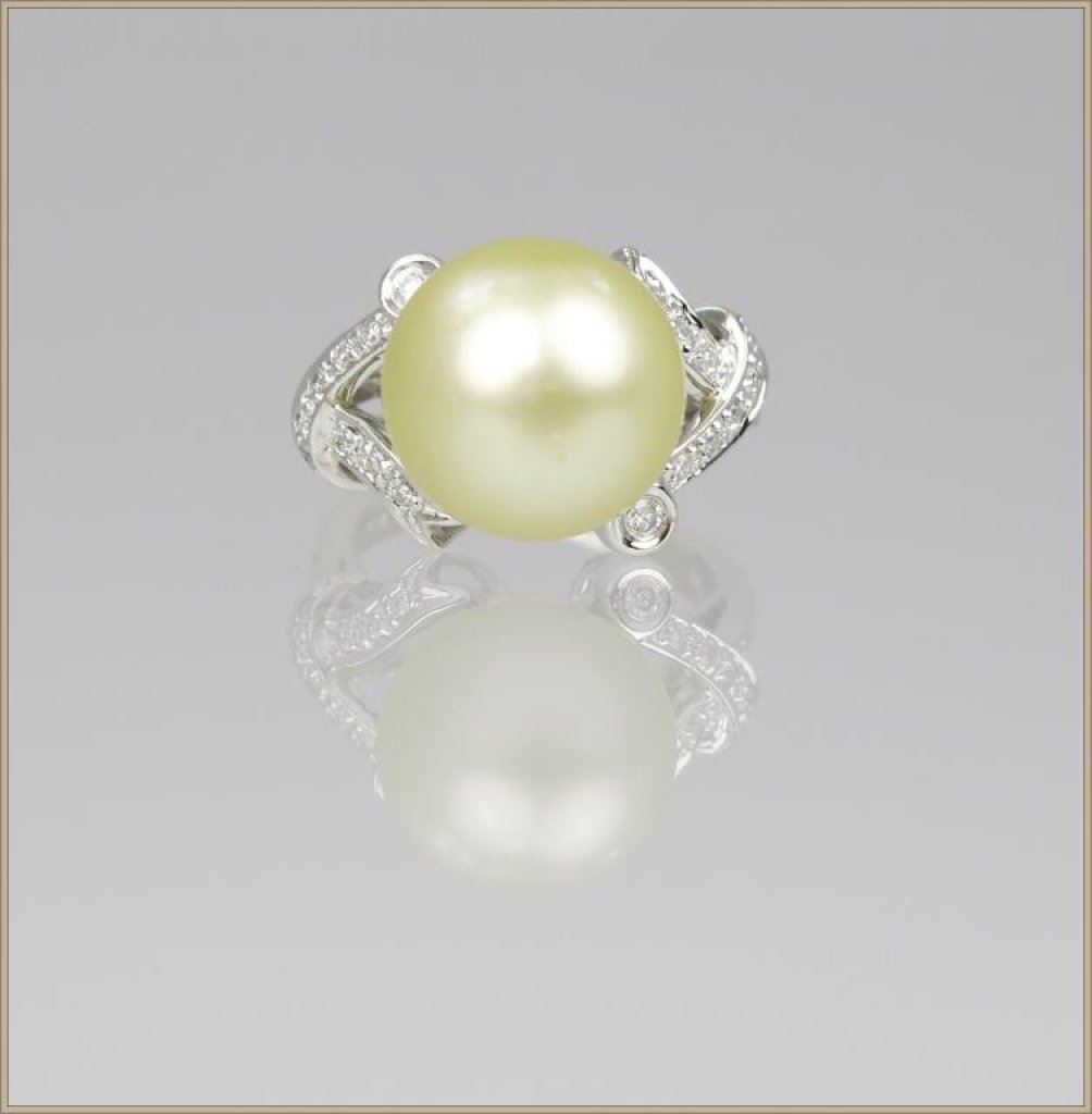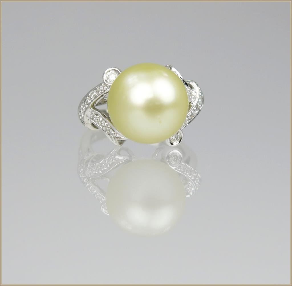 Lot 1160 Luxurious FINE Golden South Sea Pearl and Diamond Ring featuring a gorgeou
