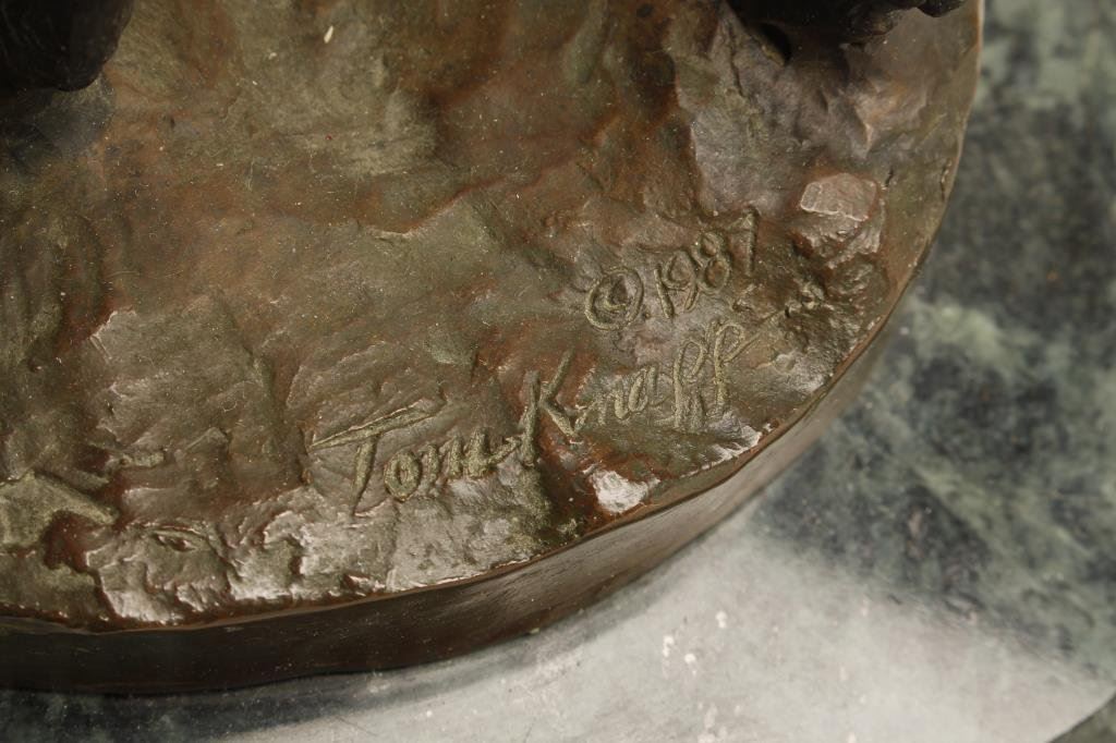Beautiful original bronze casting of an elk on base, approximately 14” long and 11” in height, #19 by Tom Knapp. Est.: $600-$1,200.