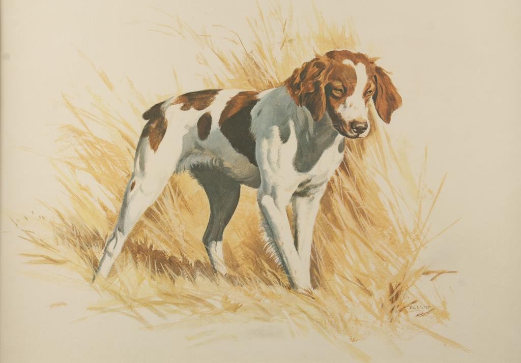 Lot 2606a Framed print of Britney Spaniel by Elliott, approx. 21” x 27”; nicely acco