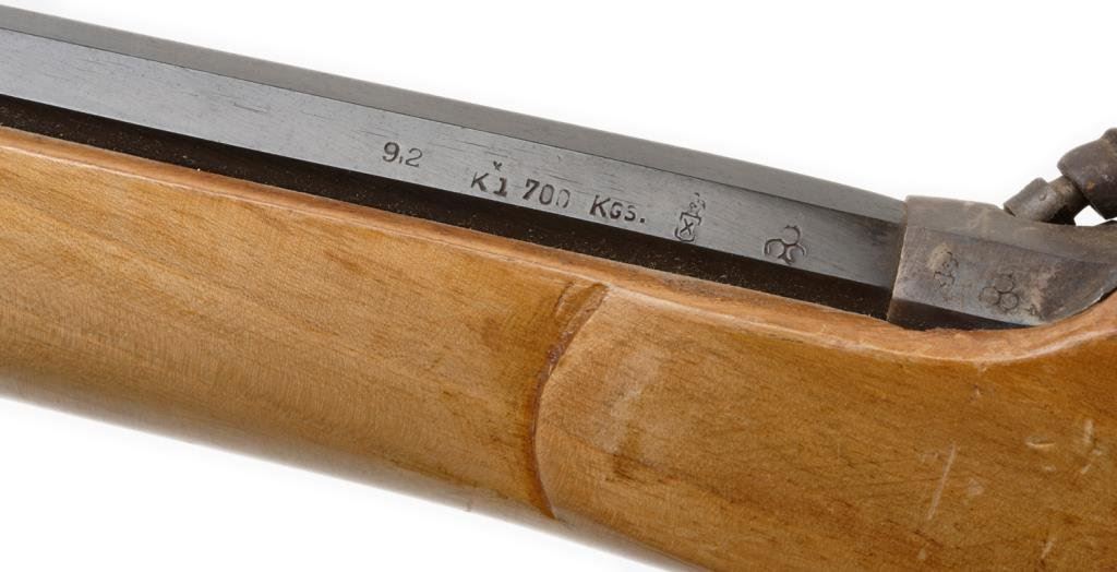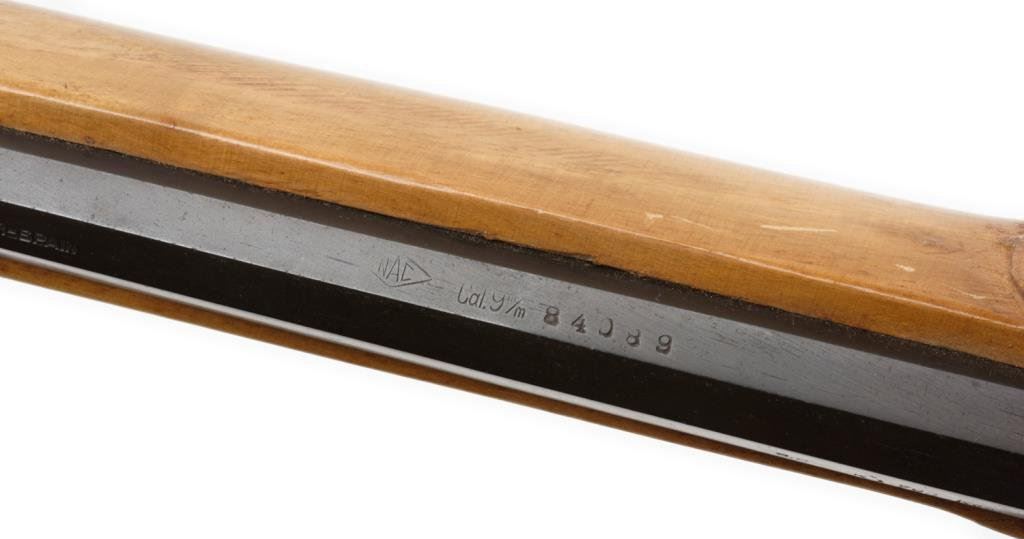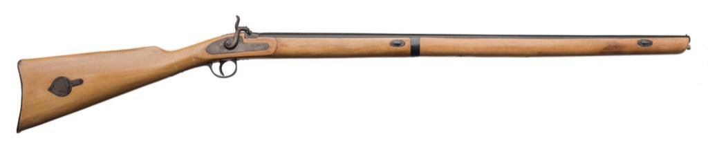 Spanish E.I.G percussion modern copy of a full stock plains type rifle, 9mm caliber, S/N 84089; overall good condition. Est.: $100-$200.