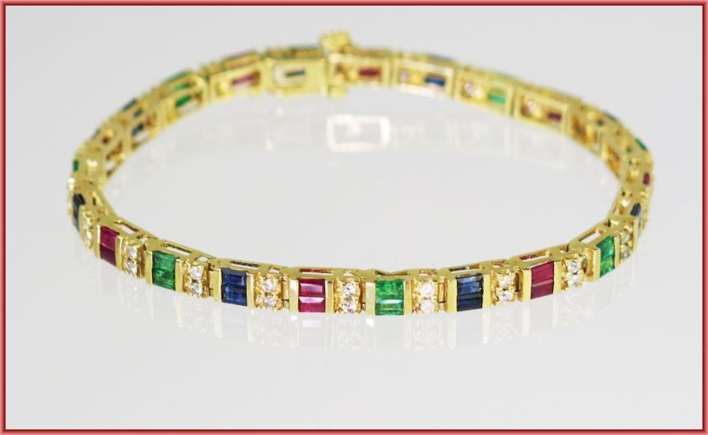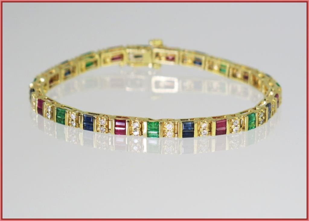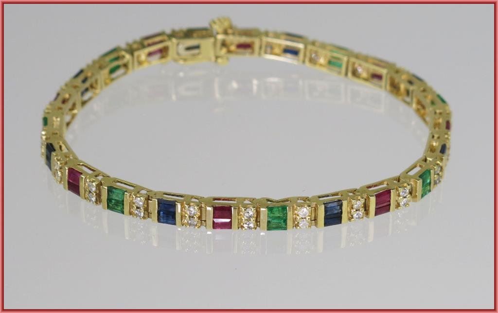 Lot 2741 Exceptional Multi-Colored Gem Bracelet featuring 46 baguette cut Rubies, E