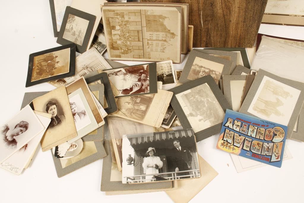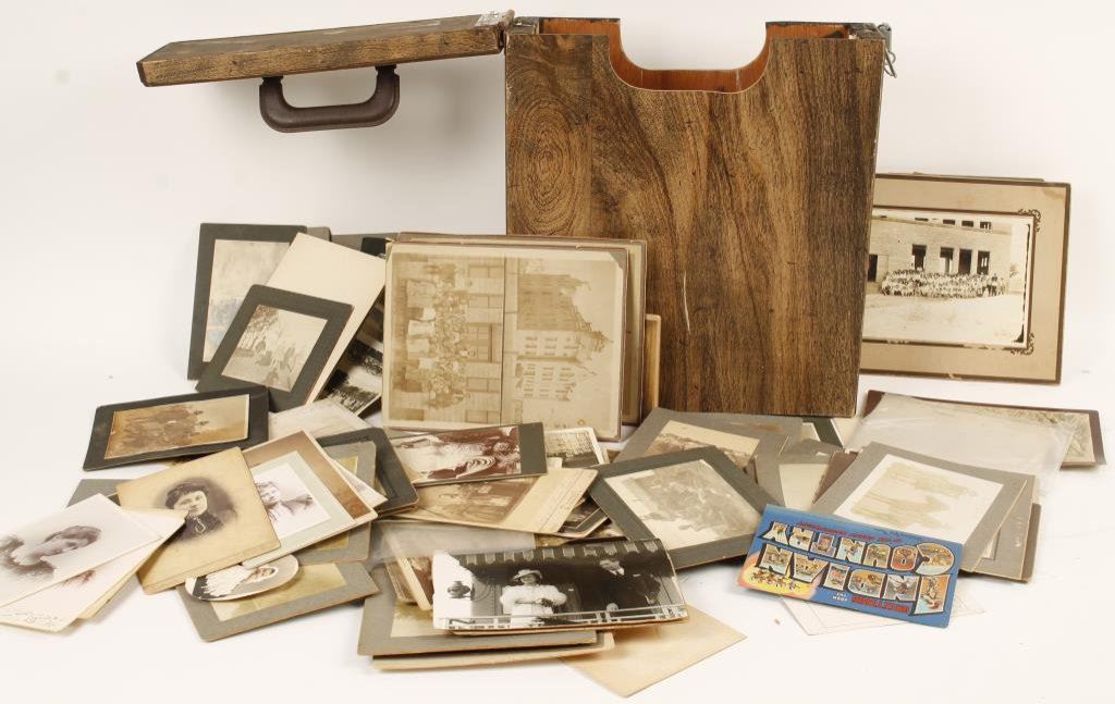 Family archive of photos, letters, advertisers from 19th Century to the 1950’s, hundreds of items; many on professional photographers cards; some good locations from East Coast to Los Angeles that are identified. Also mostly family members and WW II service photos and letters. Est.: $200-$300.