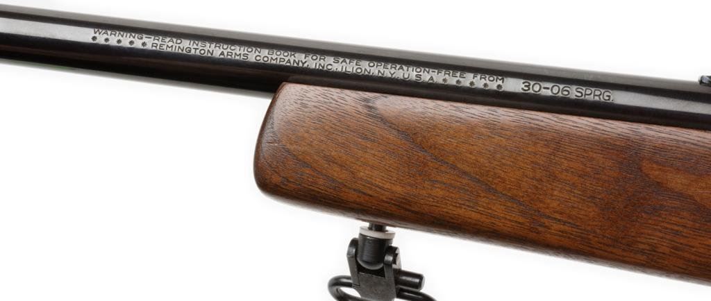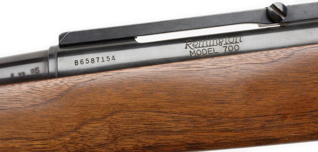 Remington Model 700 bolt action rifle, .30-06 Sprg. caliber, 22” round barrel, S/N B6587154, blued finish, no magazine, wood stock, scope mount on top of receiver; in overall fine condition. Est.: $350-$700.