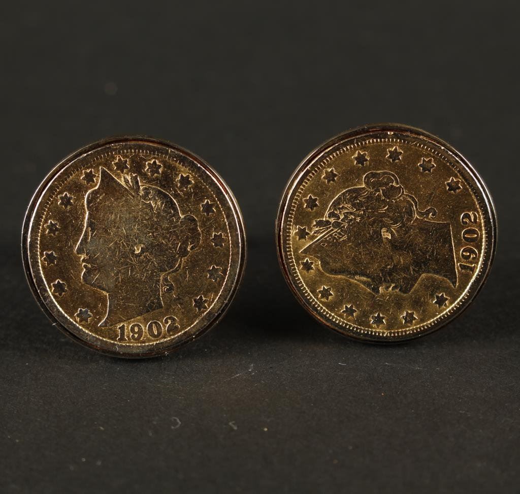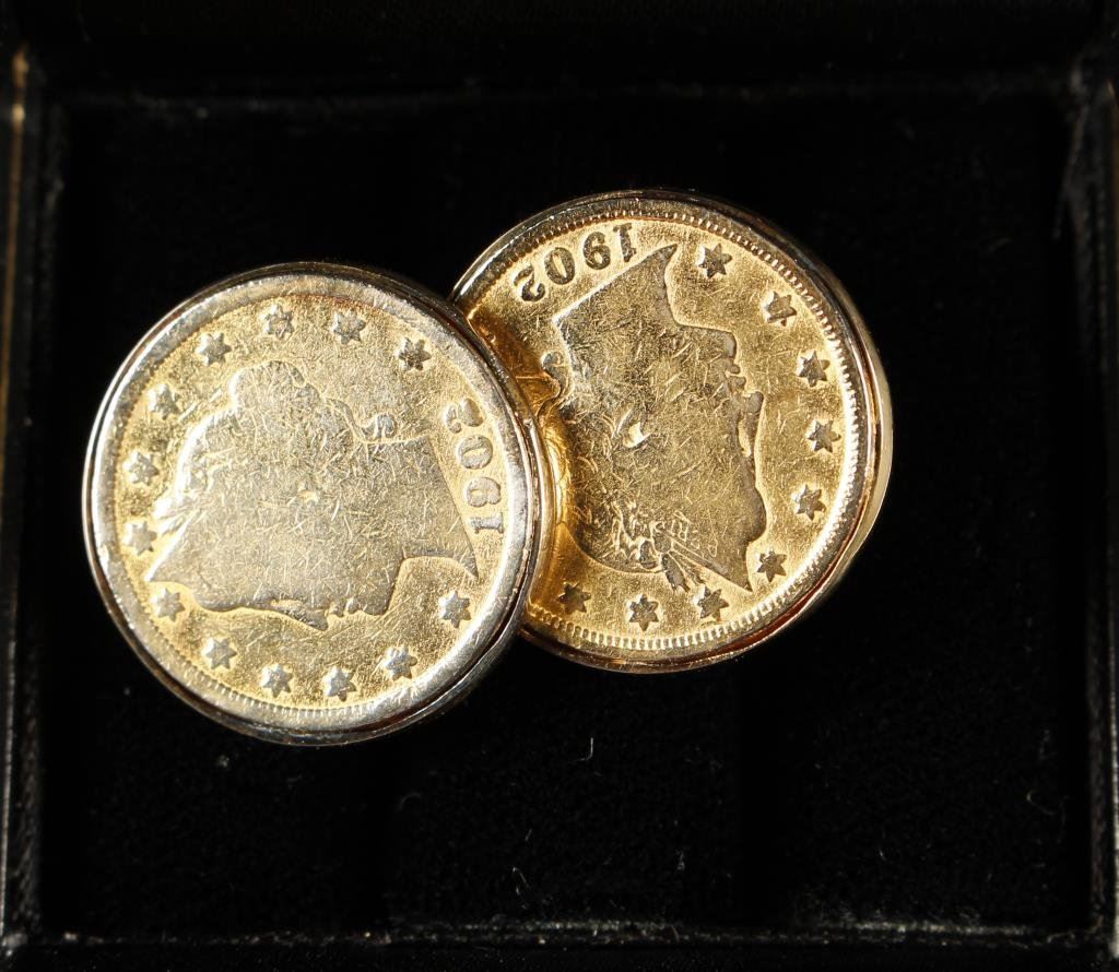 Lot 3202 Pair of U.S. silver coins gold plated over sterling. Purchased Neiman Marc