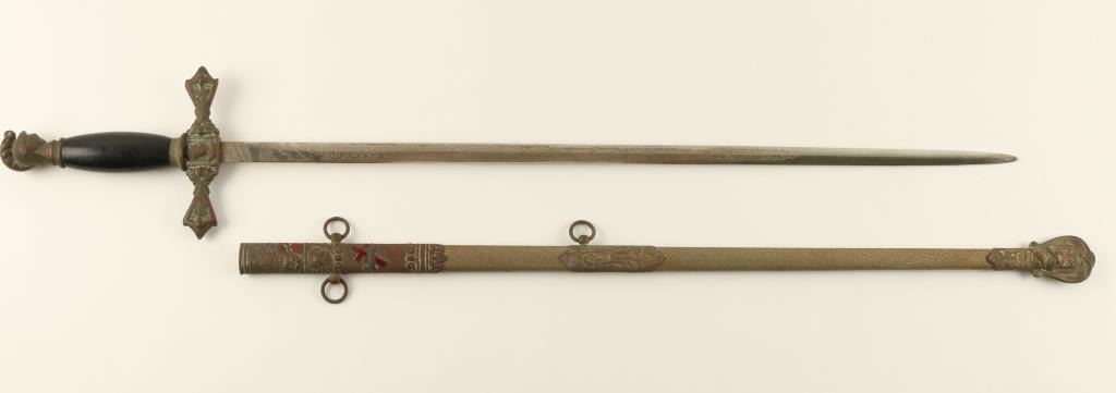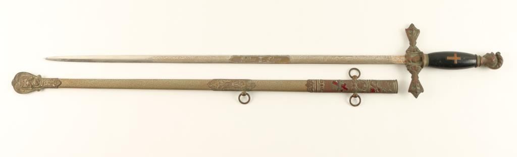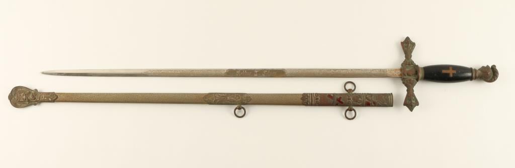 Lot 1 Knights of Columbus ceremonial sword and metal scabbard by Craddock Mercantile Co., Kansas City, M