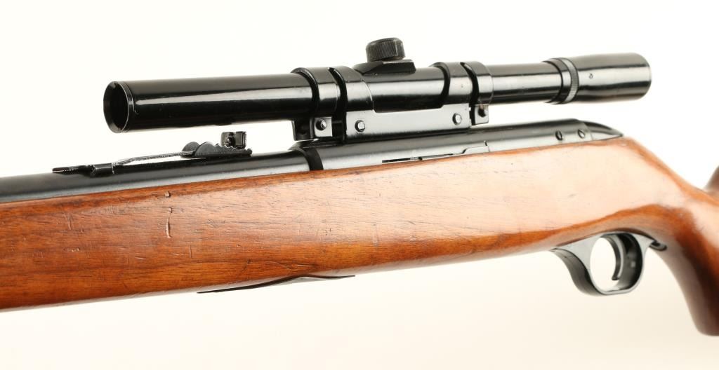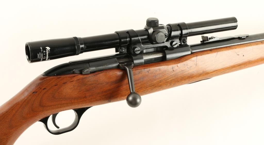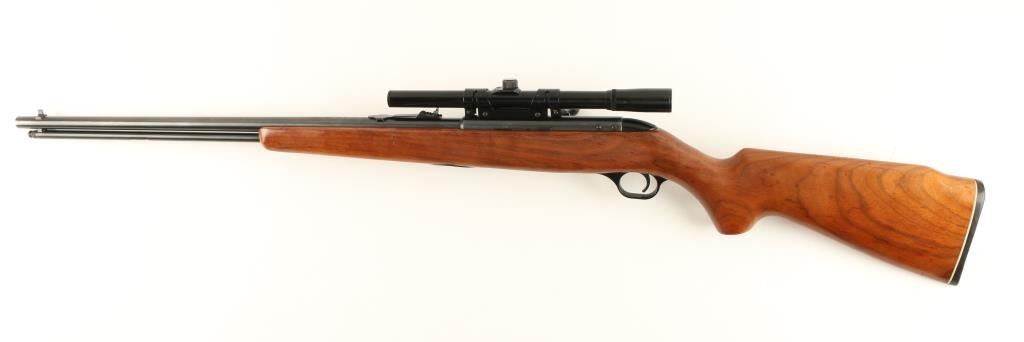 WesternField Model M842 bolt action rifle, .22 short, long or LR caliber, 24” round barrel, no visible S/N, blued finish, wood stock, mounted with a Glenfield 4X15 scope displaying good optics; overall very good condition with majorityof its original blue finish, bore may clean to good; crisp action, good markings and very good stock. (C&R). Est.: $80-$160.
