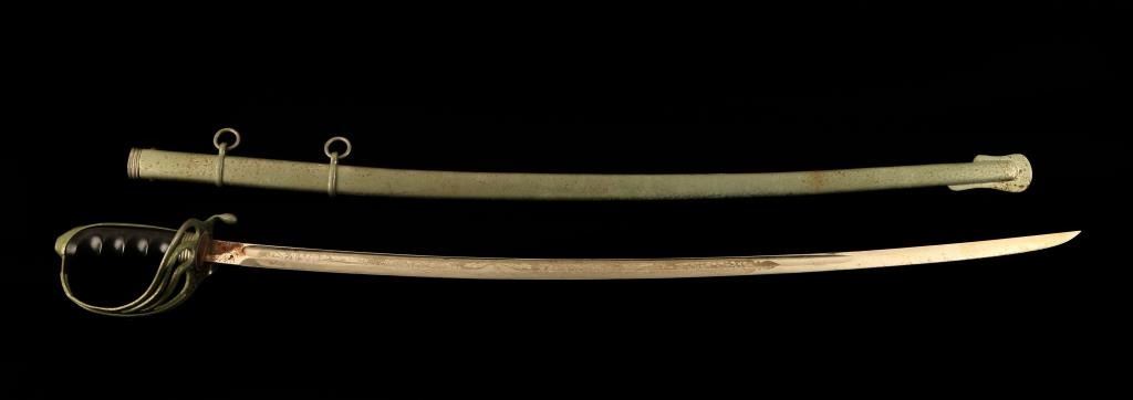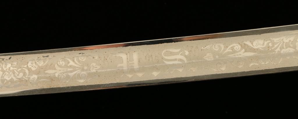 Lot 25 U.S. Model 1902 Officer’s sword and metal scabbard; etched blade is not maker marked but in overal