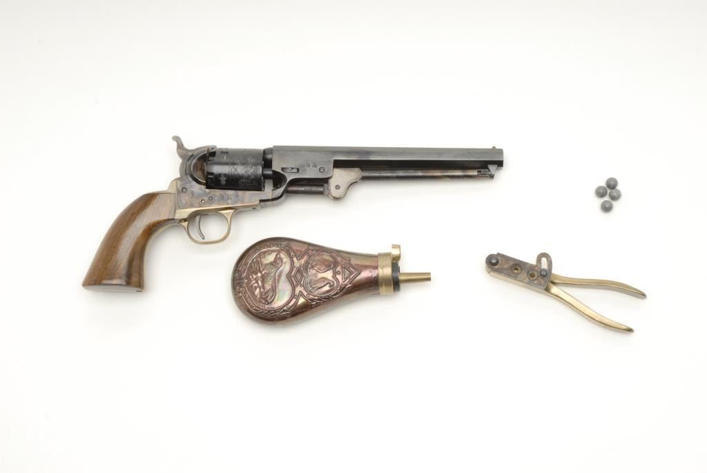 Lot 26 Reproduction 1851 Navy percussion revolver by Euro Arms., .36 cal., 7 ½” barrel, blue and case har