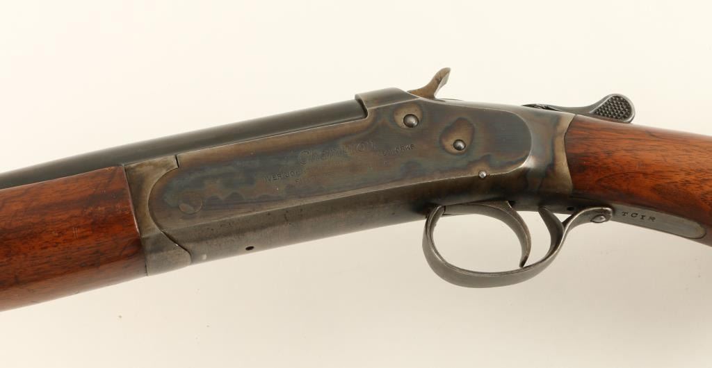 Iver-Johnson Champion Model single shot top break shotgun, .410 gauge, 26” barrel, S/N TCIR, blued and case hardened finish, wood stocks in overall fine condition displaying the majority of its original finish, fine bore, action, markings andwood. (C&R). Est.: $175-$350.