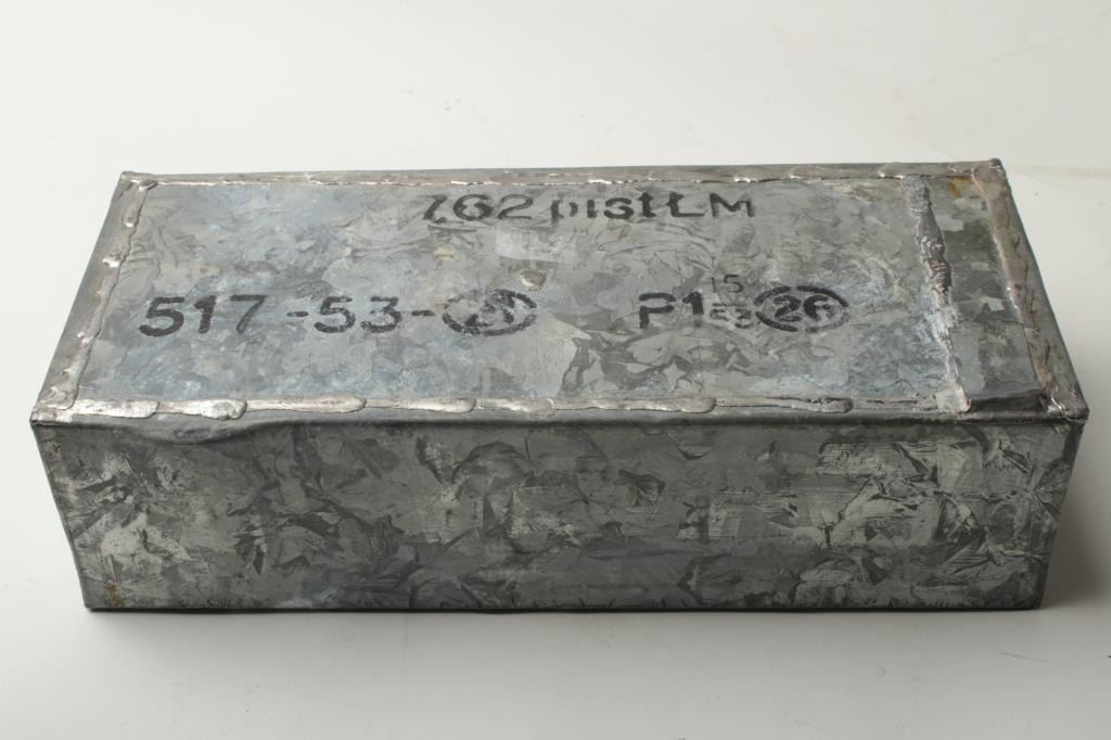 Lot 62a Sealed metal can of 1,250 rounds of 7.62 x 25mm Tokarev ammo. Est.: $200-$400.
