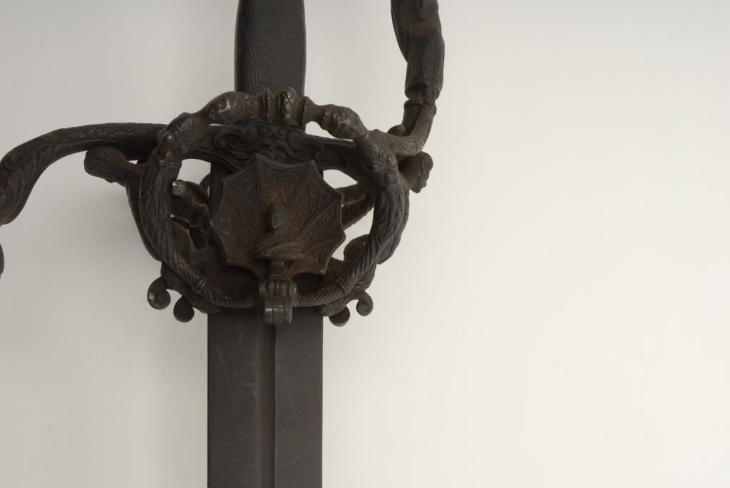 Lot 76a Ornate broadsword from Victorian era with fancy cast metal mounts and great patina. During the 19t