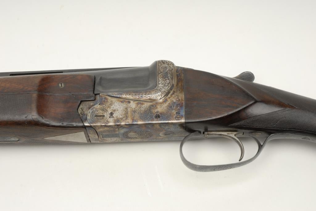 Lot 129a Early Belgian O/U trap gun in 12GA marked “L. Le Personne & Co., LTD., London”, 32” barrels, Miller
