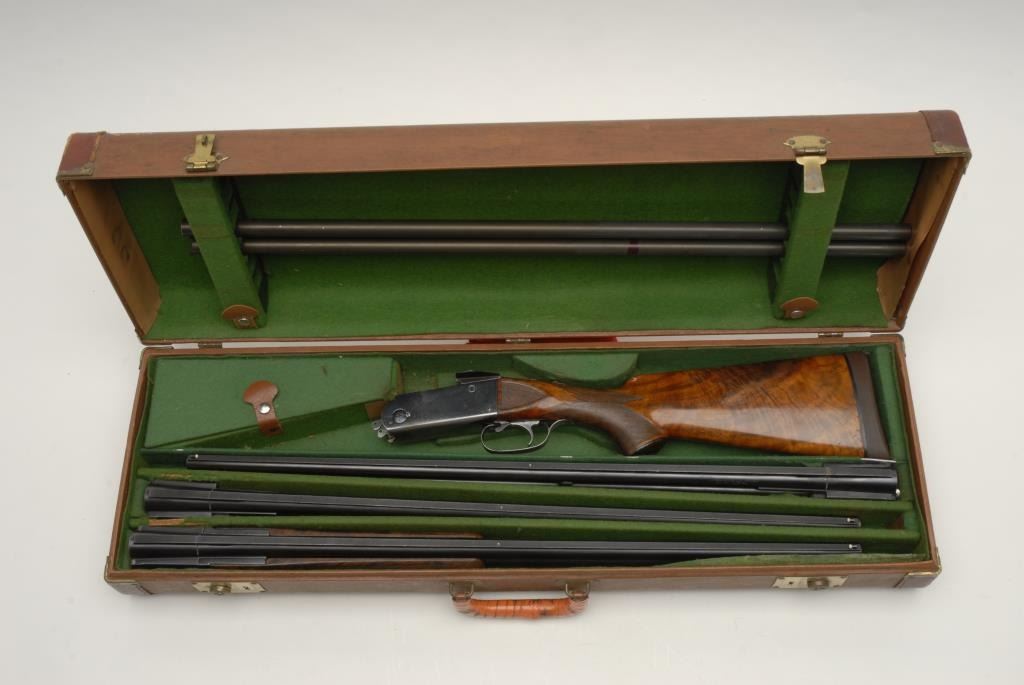 Lot 135a Early Krieghoff “Kerr’s Special” Model 32 O/U 20 GA magnum shotgun, S/N 5352 with 3 barrels, lugga