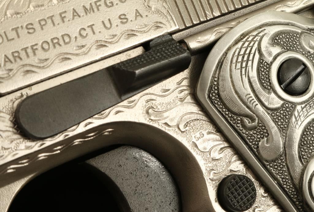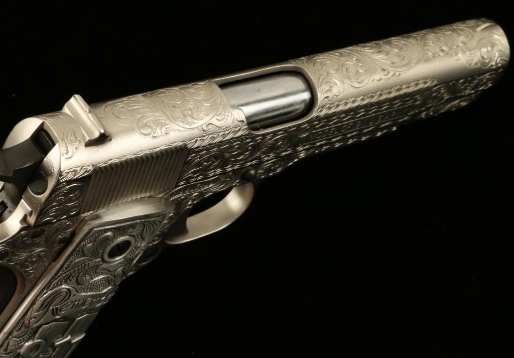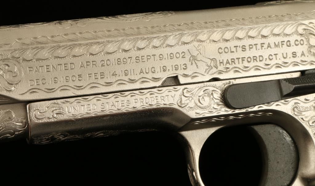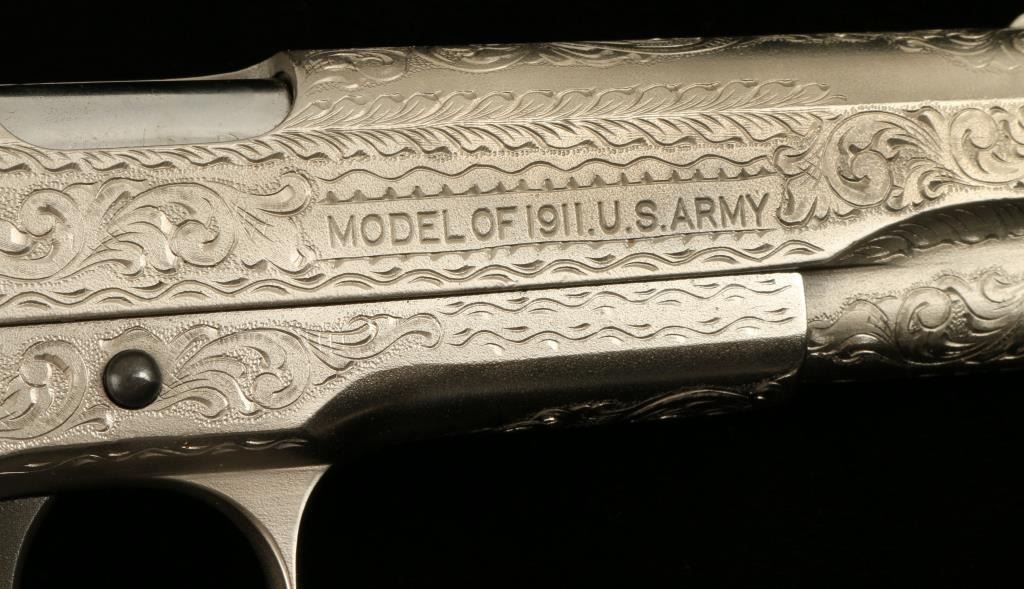 Lot 140 Colt Model 1911 U.S. Property marked semi-automatic pistol, custom engraved by modern engraving ma