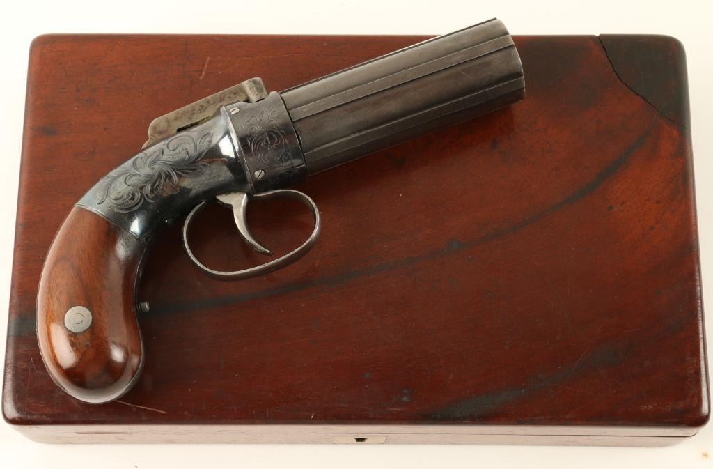 Lot 163 Allen’s patent pepperbox in .31 caliber percussion, 6 shot, remaining in excellent original condit