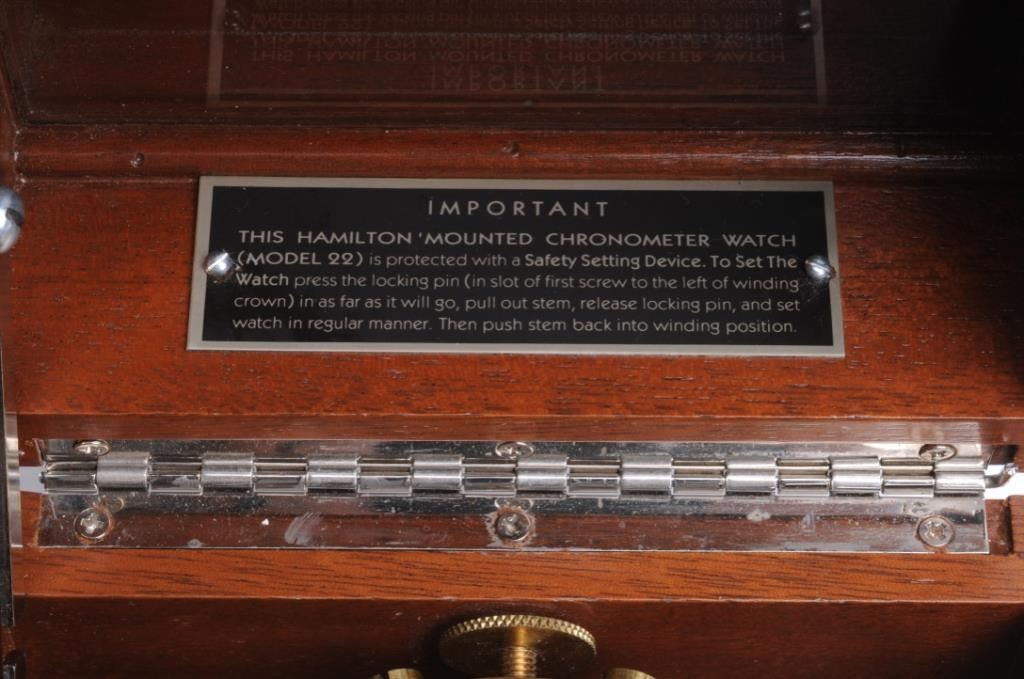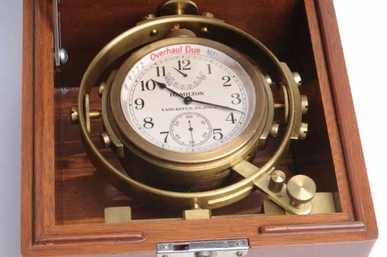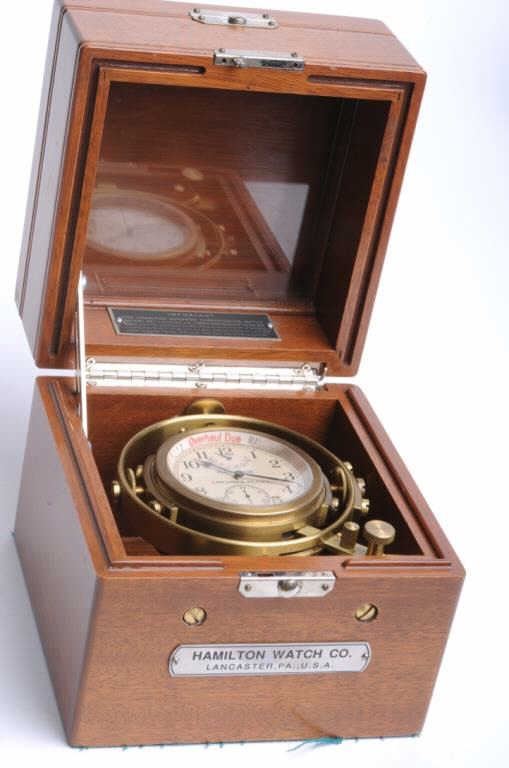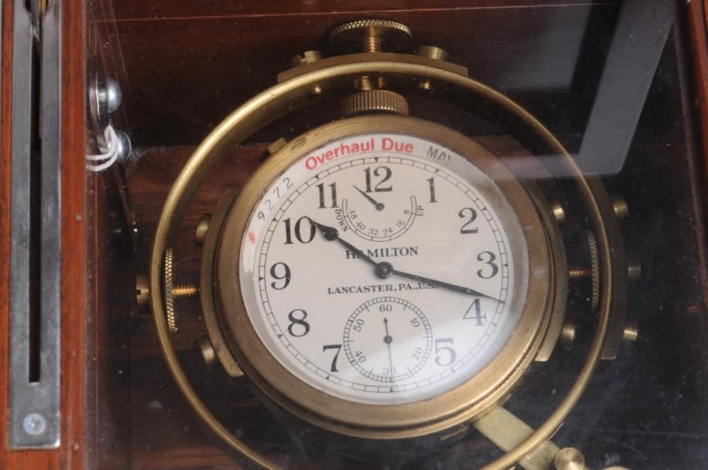 Collectors item; Vintage Hamilton marine chronometer, gimble mounted in perfect running condition. Est:$4,000-4,500