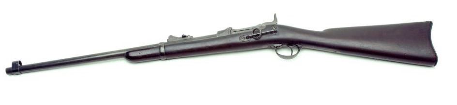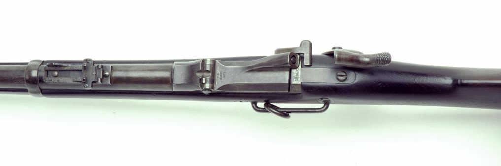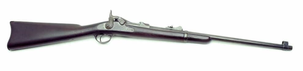 U.S. Springfield trapdoor SRC, .45-70 caliber, 22” barrel, S/N 182485*, in overall very good condition showing areas of original blue on the barrel mixed with patina, sharp markings, very good bore, crisp action and very good wood stockdisplaying no visible proofs or inspector marks; cleaning rod in butt trap. Accompanied by a handwritten note from the consignor mentioning that the * following the serial number indicates a rebuild and likely re-issue to a State Militiawith serial range possibly placing this gun as going to Colorado (not confirmed). (Antique). Est.: $1,250-$2,500.