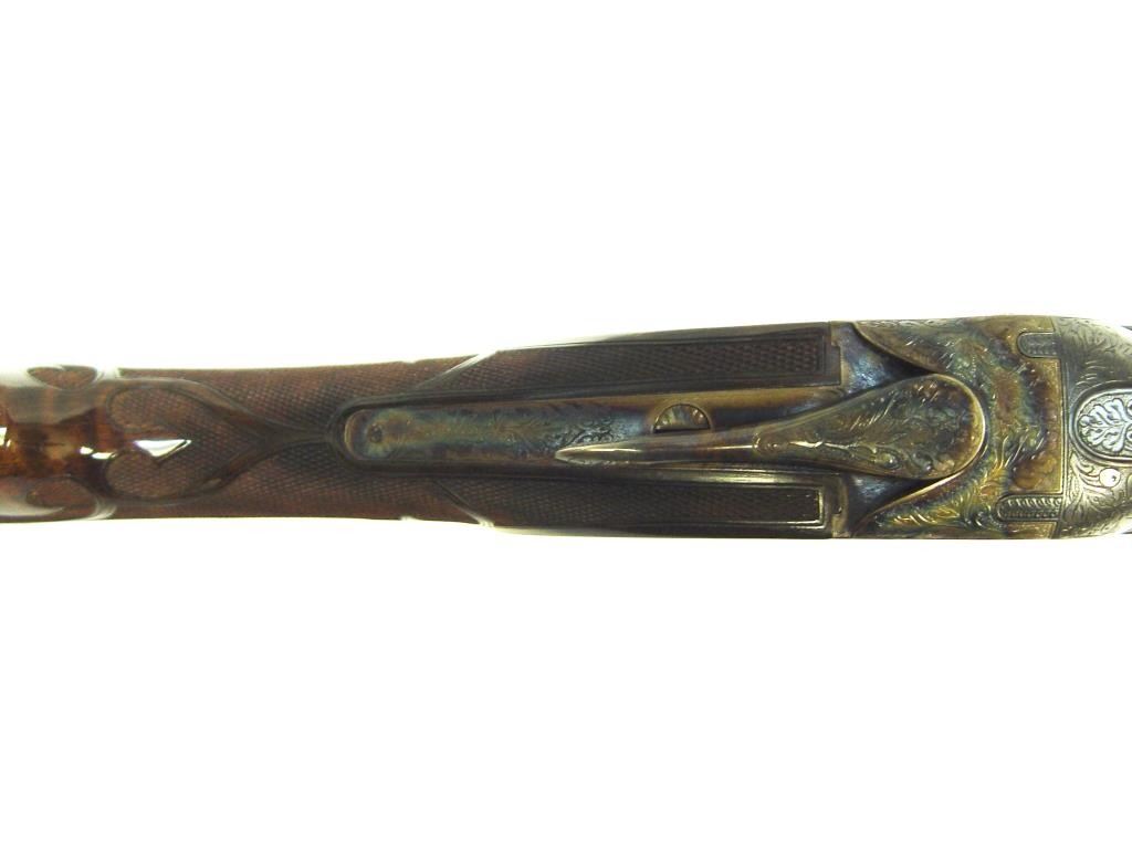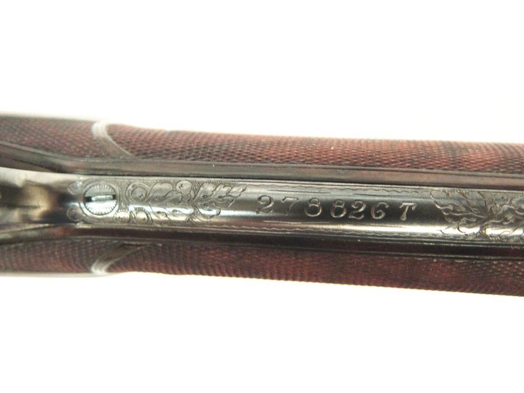 Lot 204 Ithaca 7E Single Barrel Trap shotgun in 12GA with 34” barrels, S/N 278826T showing deluxe engraving