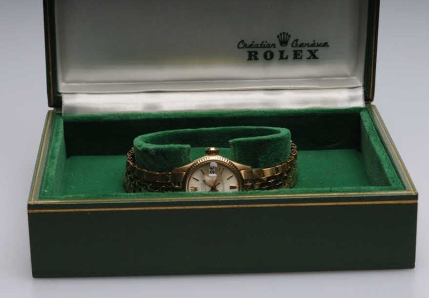 Lot 208 Vintage 18KT gold ladies Rolex from 1960’s with matching band and case. All correct and very good