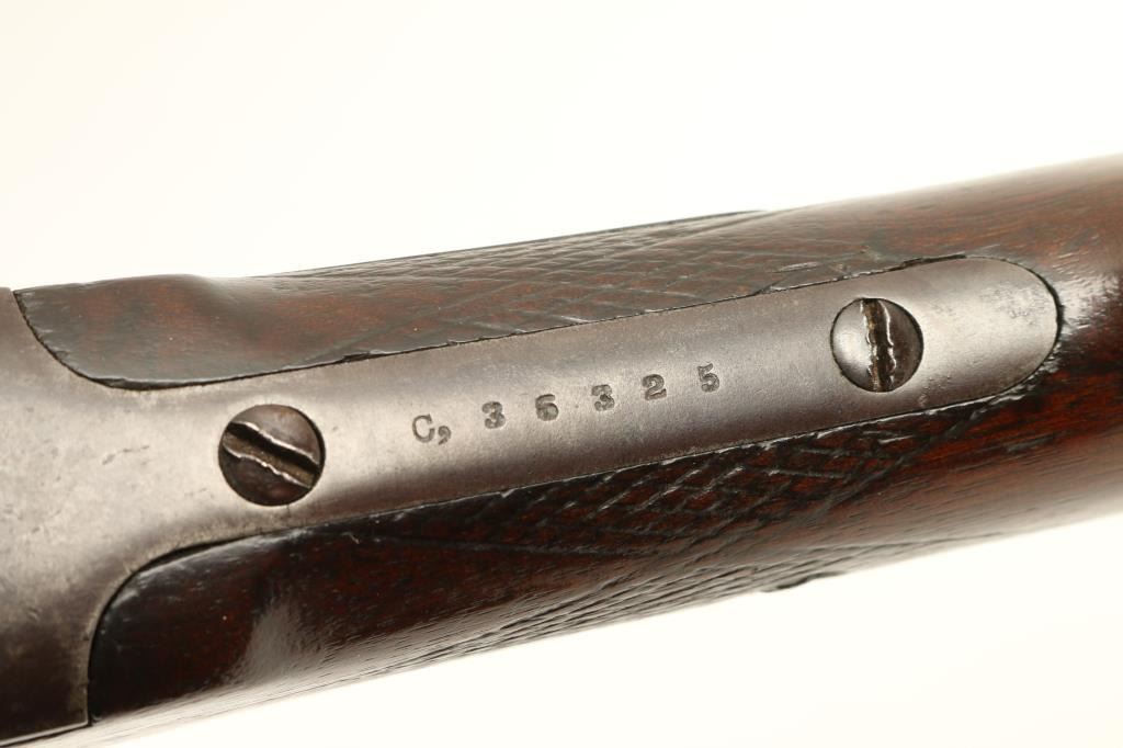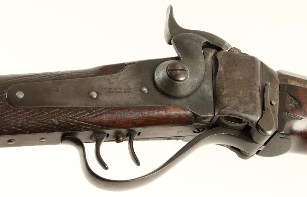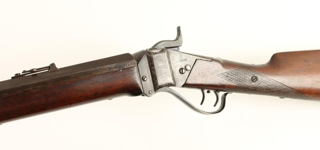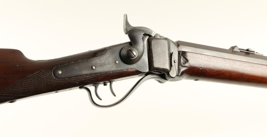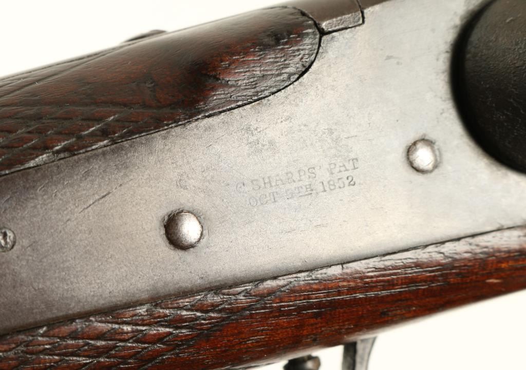 Sharps Meacham-style conversion Sporting rifle, .45 caliber, extra heavy 30” octagon barrel, S/N C36325, double set triggers working at time of description, wood stocks in overall very good condition displaying a dark patina, crisp actionand very good to near fine bore; very good wood with some scattered mars and dings from carry and storage. (Antique). Est.: $5,000-$10,000.