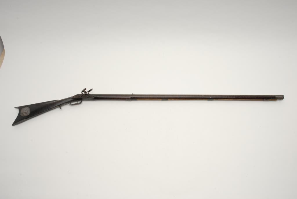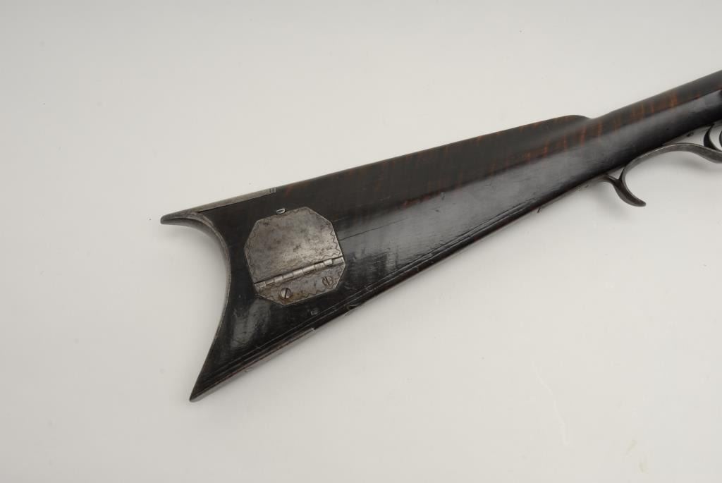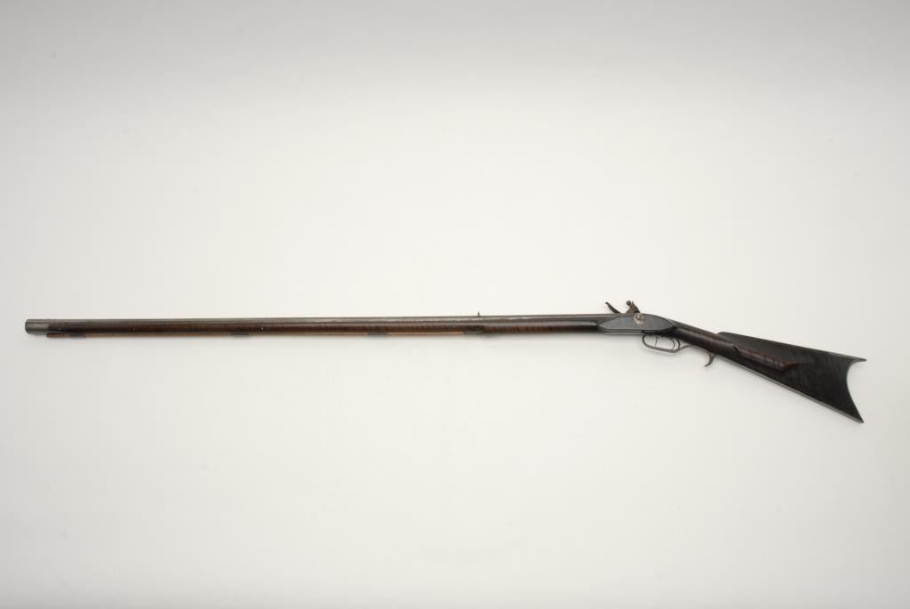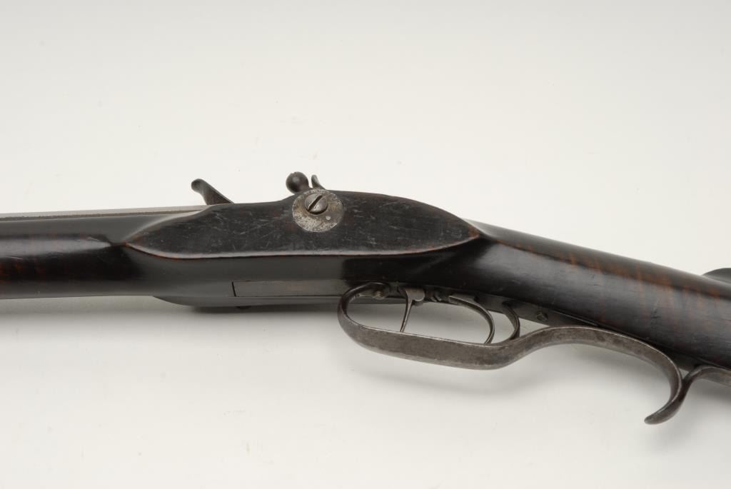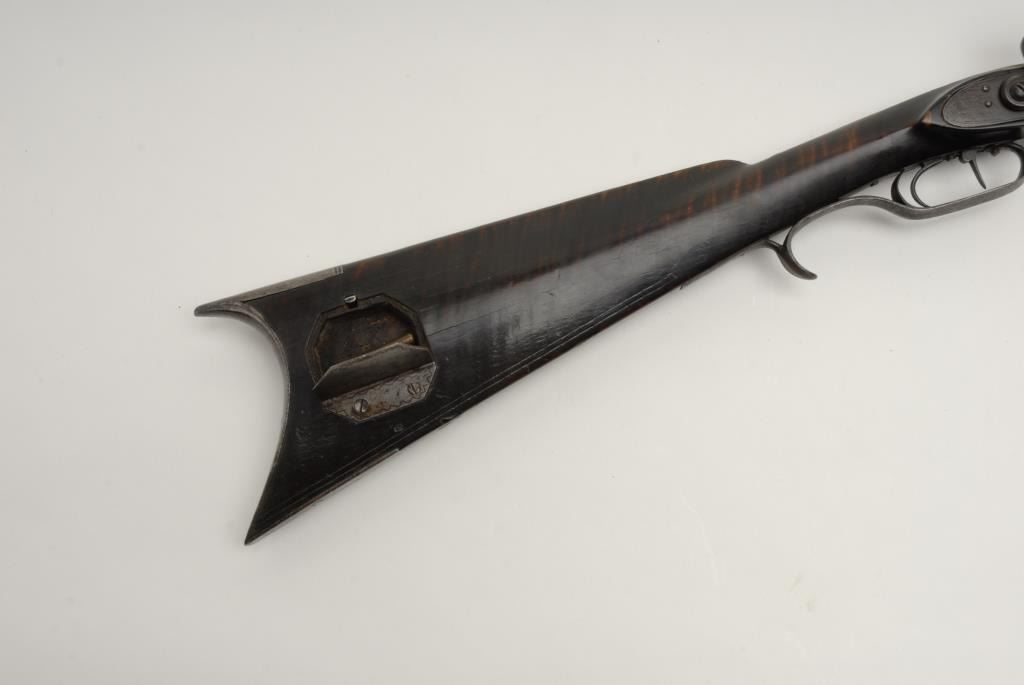 Lot 212 Beautiful flintlock Kentucky full stock rifle, .38 caliber, 46.5” octagon barrel signed “P. Wilson”